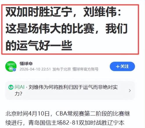 雙加時鏖戰(zhàn)后的復(fù)盤時刻,主帥聲音往往承載最多信息量。青島主帥劉維偉的賽后表態(tài),沒有渲染勝利喜悅,亦未回避自身短板,寥寥數(shù)語,直抵競技本質(zhì)。