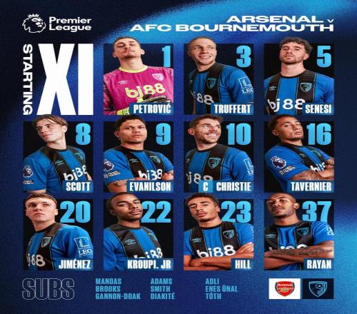 伯恩茅斯首發(fā):1-彼得羅維奇、3-特呂費(fèi)爾、5-塞內(nèi)西、23-詹姆斯-希爾、20-阿萊士-希門尼斯、10-克里斯蒂、8-斯科特、22-克魯皮、16-塔韋尼耶、37-拉揚(yáng)、9-埃萬尼爾松