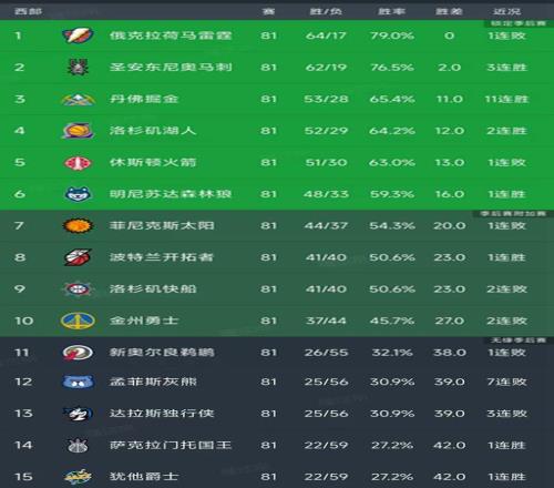 西部最新積分榜