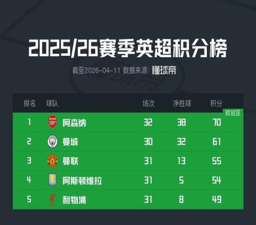目前,阿森納在32輪戰(zhàn)罷積70分排名第一,在多賽兩場的情況下領(lǐng)先第二名的曼城9分,此外,阿森納與曼城將在第33輪迎來正面交手。