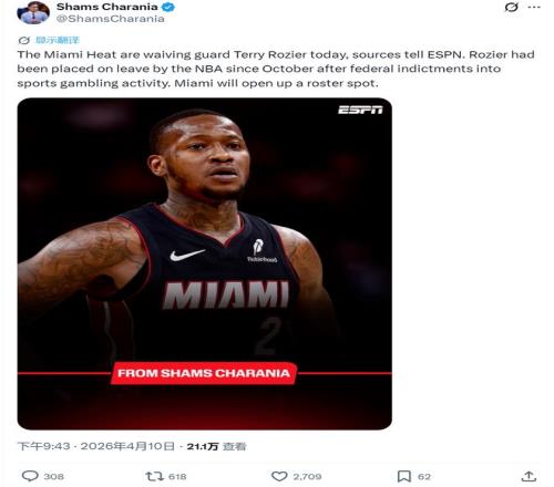 羅齊爾,被裁了。不是交易,不是買斷,是直接裁掉。本賽季一場沒打,2660萬美元薪水照拿。熱火騰出一個(gè)名額,準(zhǔn)備在季后賽開始前簽個(gè)人。東部第十,連贏兩場附加賽才能進(jìn)季后賽,熱火自己還在水里泡著,卻先把這個(gè)背了兩年的包袱扔上了岸。