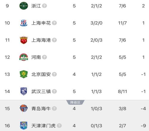 北京時間4月11日,中超聯(lián)賽第5輪繼續(xù)展開爭奪。在上個比賽日中,大連英博以3-0完勝浙江隊,今天有4場較量。在本輪比賽之前,還有5支積分為負分的球隊,只要申花擊敗同城對手海港,積分便可以“轉(zhuǎn)正”,結(jié)果申花如愿取勝。隨著申花1-0戰(zhàn)勝海港,泰山1-0,中超最新積分:榜首領(lǐng)先墊底20分。