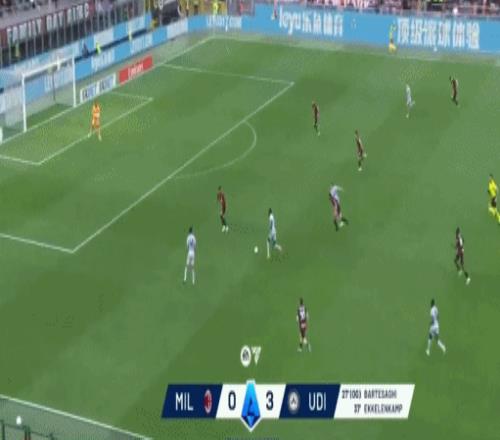第27分鐘,扎尼奧洛分球,阿塔射門(mén)造巴爾泰薩吉烏龍,烏迪內(nèi)斯1-0米蘭