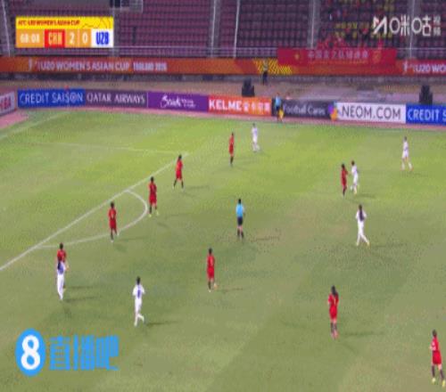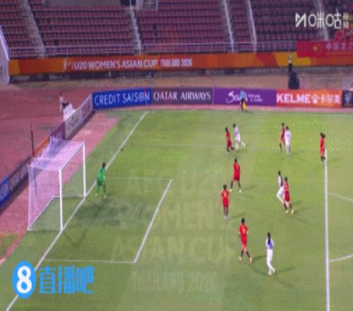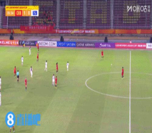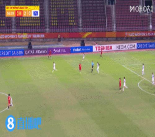 上半場補(bǔ)時2分鐘,U20女足2-0烏茲別克斯坦女足U20。