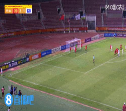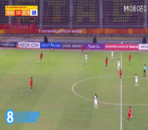 下半場補(bǔ)時5分鐘,U20中國女足2-1烏茲別克女足U20。