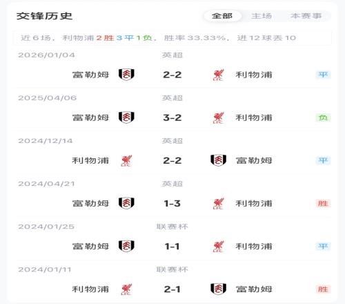 【近期戰(zhàn)績(jī)及交鋒歷史】