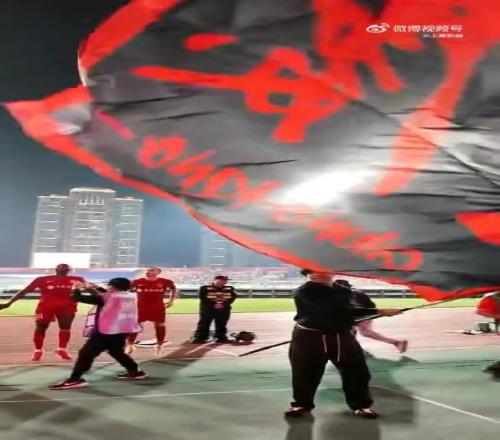 銅梁龍擊敗三鎮(zhèn)賽后,李鎮(zhèn)全和向余望在場邊與球迷一同慶祝勝利