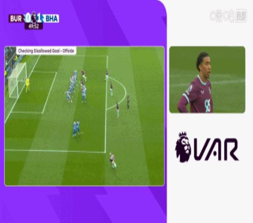 體育播報04月11日宣 英超第32輪,伯恩利vs布萊頓。比賽第48分鐘,普勞斯直接任意球造成門將維爾布魯根脫手,漢弗萊斯補射入網(wǎng),邊裁舉旗示意越位。VAR回放檢查后確認越位,進球無效。伯恩利仍0-1落后布萊頓。