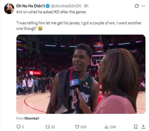 賽后愛德華茲談到跟杜蘭特的耳語:我當時跟他說,我想要你的球衣,雖然我已經(jīng)有幾件了,不過我還是想更多,哈哈哈。