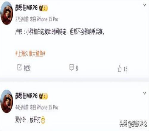 盧偉:小胖和白邊復出時間待定,但都不會影響季后賽。
