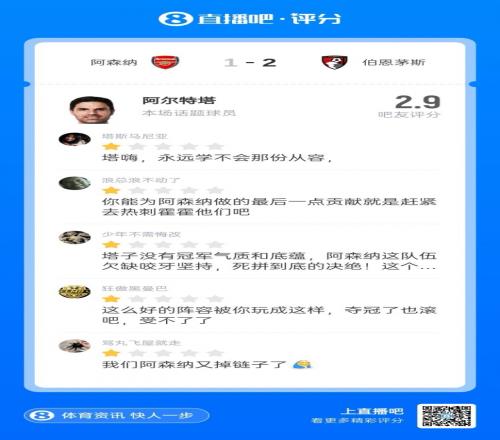 目前,已經(jīng)有超萬名吧友為阿森納主帥阿爾特塔評分,當前評分2.9分。五星評分9.8%、四星有0.8%、三星1.5%、二星2.2%,多達85.7%吧友評分1星。