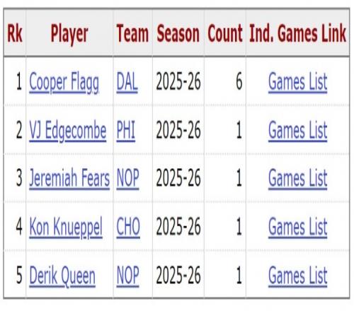 根據(jù)數(shù)據(jù)統(tǒng)計(jì),這是弗拉格本賽季第6次砍下至少30分5籃板5助攻,他的30+5+5場(chǎng)次在本屆新秀中一枝獨(dú)秀,其他新秀加起來一共只有4次。
