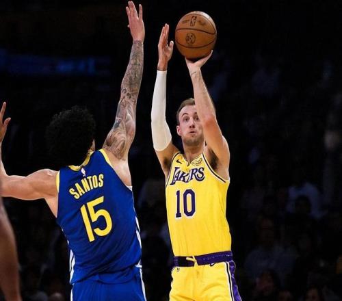 肯納德進攻就是個頂級冷血射手+聰明的無球高手。他最狠的是三分,出手快、姿勢穩(wěn)、不管怎么跑位、接球就扔都很準,是聯(lián)盟歷史級別的三分手 。他不粘球,全場不停繞掩護、反跑,總能溜到空位,只要詹姆斯、東契奇一吸引包夾,球到他手里基本就進。他不光會投,被人撲太狠時,會用假動作晃一下,運一步突破或急停中距離,左手終結也穩(wěn)。突破后還能分球給底角或空切的隊友,傳球很穩(wěn)、不失誤,完全不是那種只會站著等球的純射手,能幫湖人把進攻空間徹底拉開,讓內線和突破更輕松。