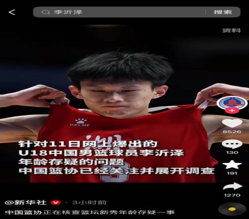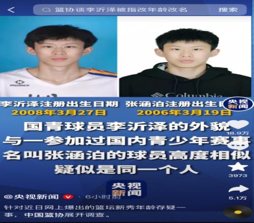 體育播報04月12日宣 據(jù)新華社報道,中國籃協(xié)正在核查籃壇新秀年齡存疑一事!