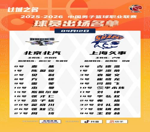 體育播報(bào)4月12日宣 今晚7點(diǎn)35分,CBA將迎來(lái)一場(chǎng)焦點(diǎn)對(duì)決,北京男籃將對(duì)陣上海男籃。