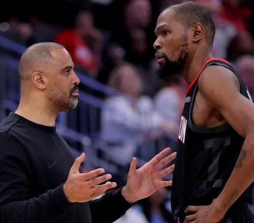 阿門23歲,小賈巴里史密斯22歲,兩人年富力強都是體能怪,烏度卡這么使用火箭二少倒也罷了;杜蘭特已經(jīng)年滿37周歲且有過跟腱斷裂的嚴重傷病史,烏度卡這么死神杜蘭特確實有些過分,卻不難理解!火箭隊飽受傷病困擾在漫長賽季中起起伏伏,即便火箭隊在前三節(jié)建立起兩位數(shù)的巨大領(lǐng)先優(yōu)勢,杜蘭特也可能在末節(jié)被迫加班。如果要追本溯源,關(guān)鍵還是火箭隊的年輕人們羽翼未豐,而杜蘭特手中的鐮刀依舊犀利,烏度卡遇事不決找杜蘭特屢試不爽,杜蘭特也確實很少辜負烏度卡的重托。