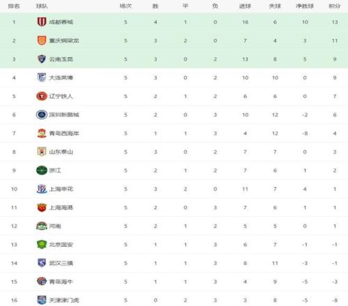 隨著蓉城21絕殺國(guó)安,海牛11絕平津門虎,中超最新積分榜出爐!
