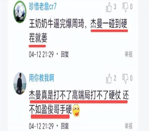 北京球迷一致認(rèn)為杰曼打不了高端局,“杰曼真是打不了高端局,打不了硬仗,還不如盈俊哥手硬”、“北京隊(duì)為什么第四節(jié)老是用杰曼這種垃圾呢?十五投三中,那個(gè)濃包教練就是毒”、“杰曼一碰到硬茬就萎”。球迷說得非常對(duì),看來北京隊(duì)本賽季續(xù)約杰曼是一步錯(cuò)棋,四個(gè)外援打不過兩個(gè)外援,爭(zhēng)冠的希望看來是渺茫了。你們說呢?