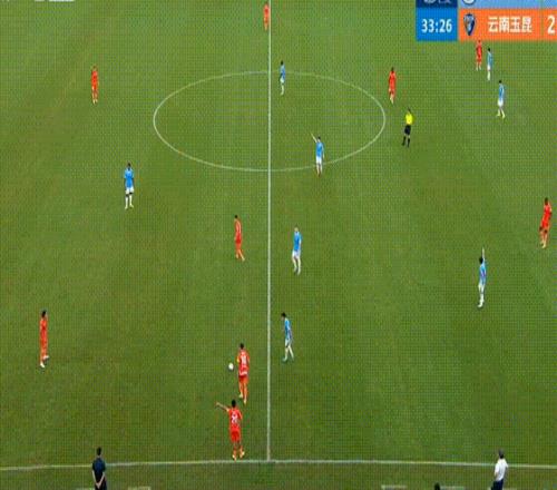第34分鐘,約尼查大腳長(zhǎng)傳到禁區(qū),奧斯卡前插頭球攻門頂進(jìn),云南玉昆改寫比分到3-0。