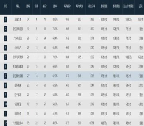 作為本賽季最有統(tǒng)治力的隊伍,上海隊迄今為止場均得分(99.9)、籃板(43.4)、助攻(23.9)、三分命中率(39.3%)、投籃命中率(52.8%)、投籃命中數(shù)(36.8)、百回合得分(126.5)、百回合失分(105.5)、百回合凈勝分(21.1)、有效命中率(59.9%),以及籃下命中率(73%)均高居聯(lián)盟榜首。