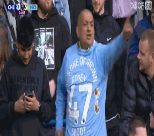 值得一提的是,這位曼城球迷似乎是認準了鏡頭還會對準他,他隨后套上了一件福登的特制球衣,表達對其的支持。