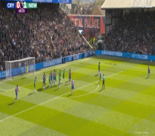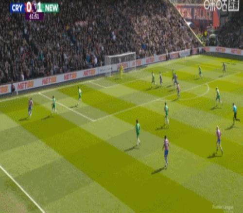 第43分鐘,奧蘇拉倒地補(bǔ)射破門打破僵局,紐卡1-0水晶宮