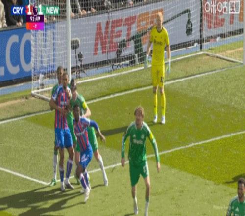 第80分鐘,米切爾助攻,馬特塔頭球破門扳平比分,水晶宮1-1紐卡