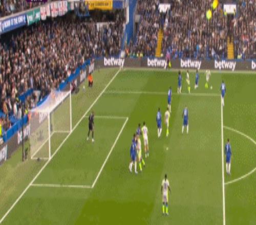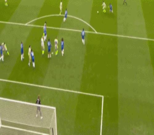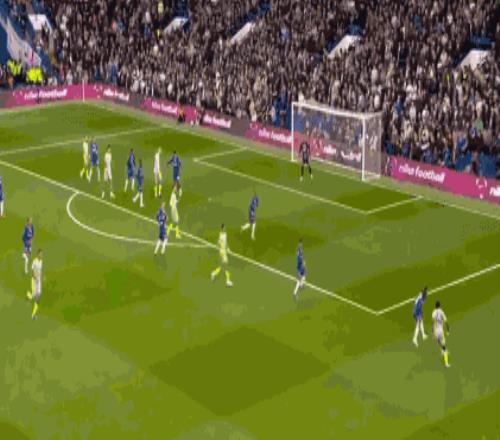 第33分鐘,多庫(kù)左路突破直傳,奧賴(lài)?yán)迳系谷腔厍?,B席包抄到位迎球推射,羅伯特-桑切斯奮力救險(xiǎn)。