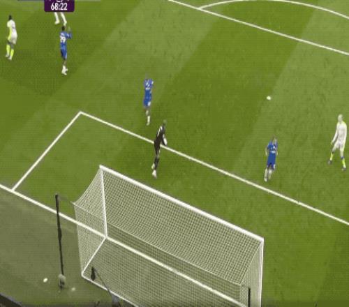 第34分鐘,奧萊利倒三角傳中,B席的彈射球速極快,桑切斯如八爪魚一般,做出關(guān)鍵撲救。