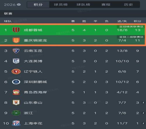 爭(zhēng)冠有戲!川渝雙雄輪流登頂積分榜:成都進(jìn)球數(shù)等于4隊(duì)之和