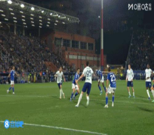 第24分鐘,瓦萊禁區(qū)內(nèi)倒鉤踢到鄧弗里斯頭部吃到黃牌↓