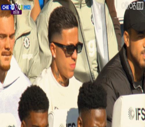 鏡頭給到被藍(lán)軍禁賽的恩佐?!?/p>