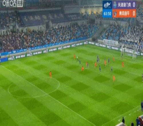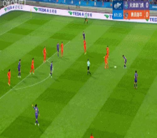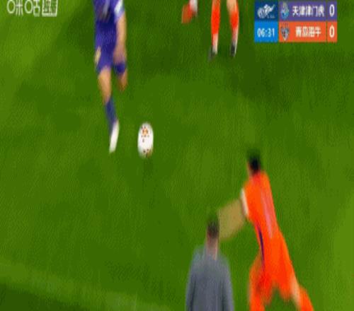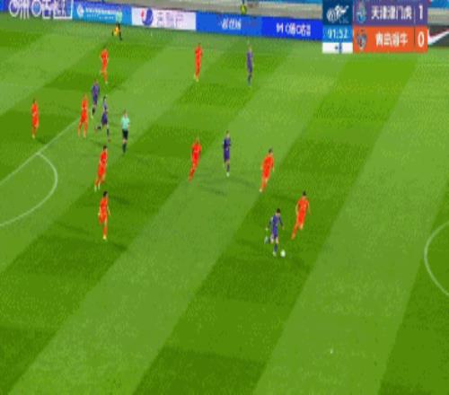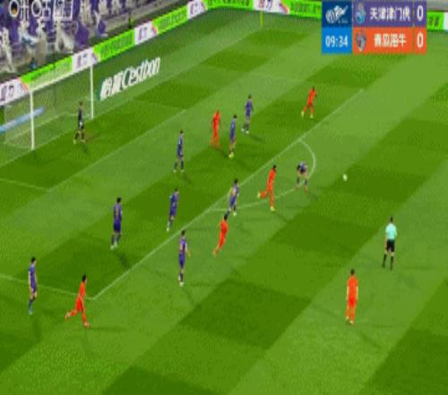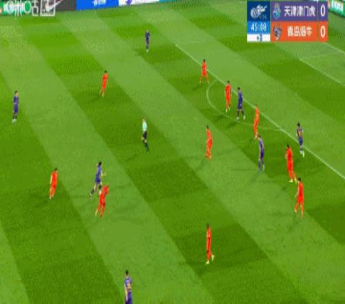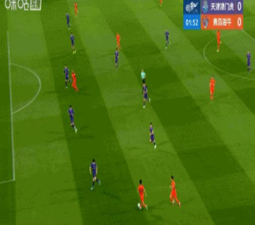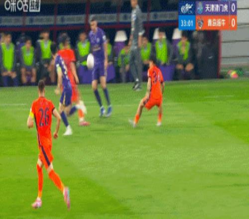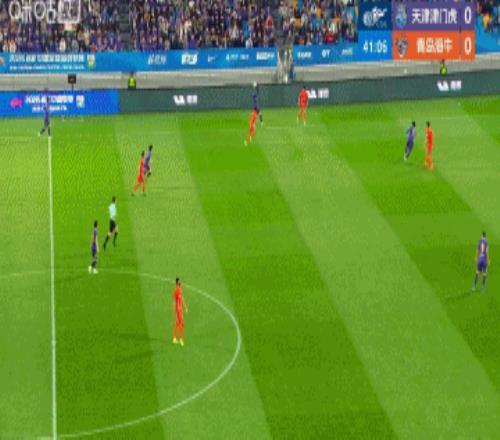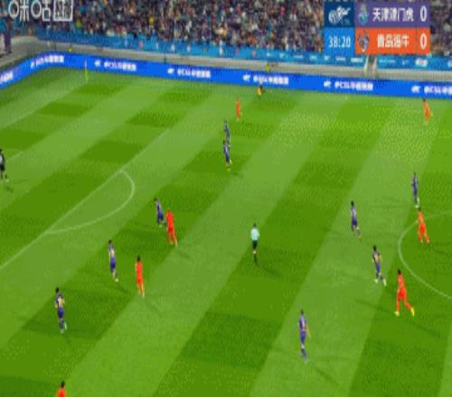 第2分鐘,青島海牛弧線球傳到門前,小禁區(qū)前的包抄稍稍慢了一點↓