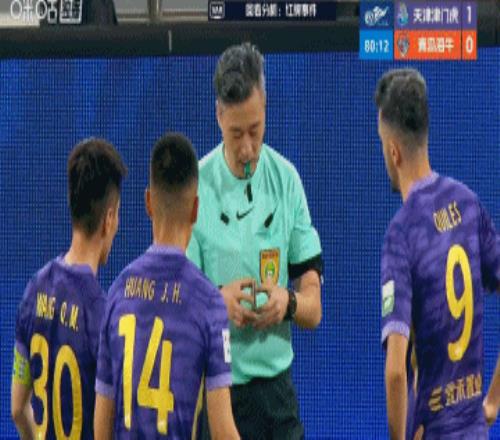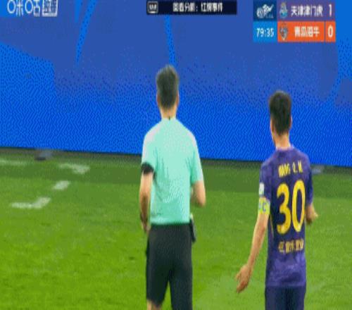 第81分鐘,黃嘉輝鏟球蹬踏到金永浩的腳踝,主裁判回看VAR后向黃嘉輝出示第二黃,兩黃變一紅被罰下場!津門虎剩10人迎戰(zhàn),金永浩傷退↓