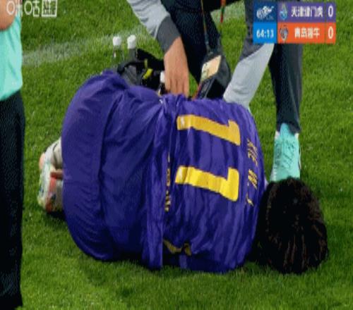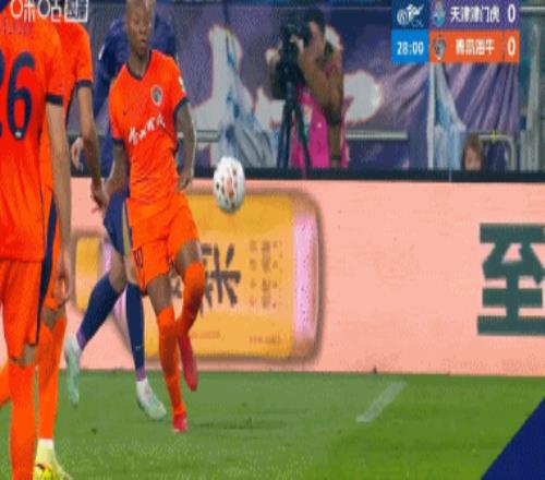 第62分鐘,津門虎右路攻勢,巴頓禁區(qū)內右側橫掃門前,皮球被牟鵬飛伸腿擋出↓