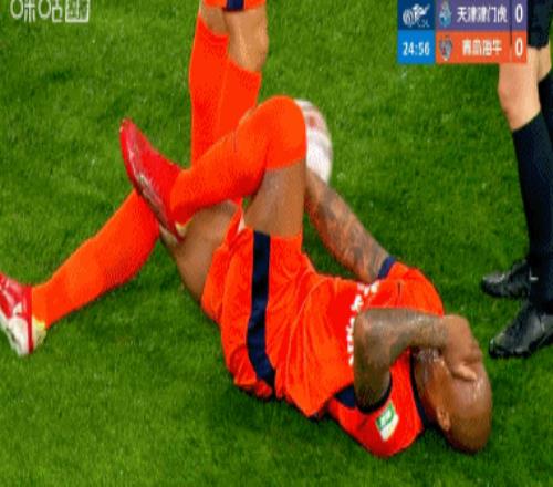 第64分鐘,謝維軍禁區(qū)前遠射被封堵,對腳后痛苦倒地↓