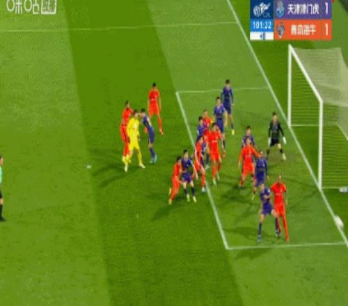 第90+11分鐘,海牛右側角球開出,皮球來到門前,楊帆不慎自擺烏龍!海牛1-1絕平津門虎↓