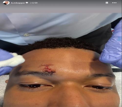體育播報04月12日宣 姆巴佩更新個人社媒,曬出自己右側(cè)眉骨上方受傷縫針的近距離特寫。