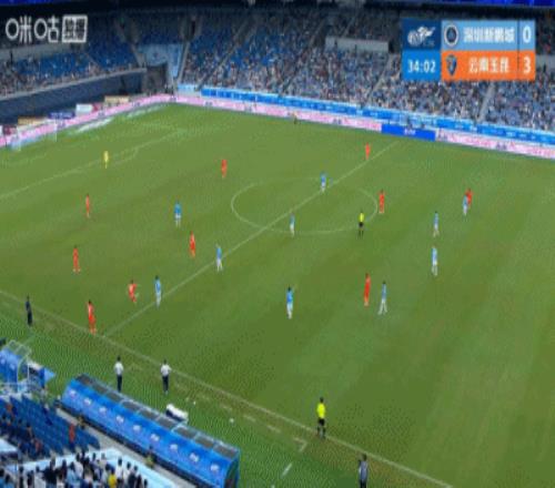 半場(chǎng)戰(zhàn)罷,云南玉昆暫3-2深圳新鵬城。