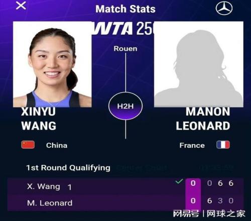 資格賽首輪,王欣瑜的對(duì)手是21歲的法國(guó)本土外卡選手瑪農(nóng)·萊昂納德。萊昂納德當(dāng)前WTA單打排名在300位開外,職業(yè)生涯最高排名也不過第176位。無論是排名、實(shí)力還是比賽經(jīng)驗(yàn),王欣瑜都占據(jù)絕對(duì)優(yōu)勢(shì)。