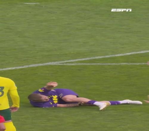 上半場比賽第34分鐘,霍爾特比被踢后倒地,隨后鏡頭中可以看到,他的小腿出現(xiàn)一道長長的血口,之后霍爾特比被換下場。