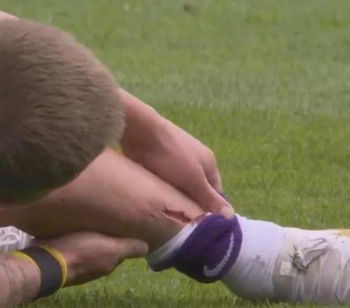 慎入,熱刺舊將霍爾特比在荷甲賽場上小腿被踢出一道血口