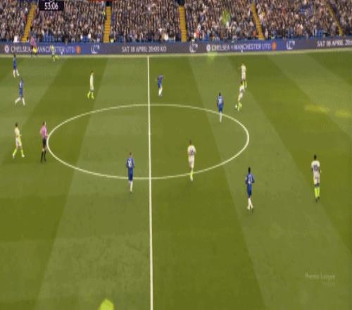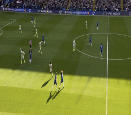 丟球了,切爾西在主場總該有些變化了吧,你不能說沒有,這體現(xiàn)在他們的前場逼搶力度稍有提高,但并沒有提高到足以干擾曼城后場球員起腳質(zhì)量的高度,所以曼城反而打出了兩次不錯的打身后,這就把切爾西又給打回去了: