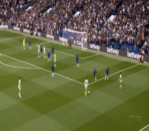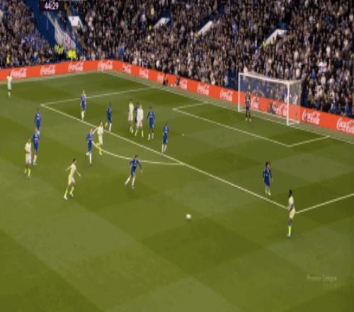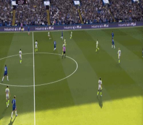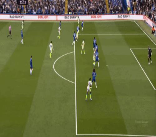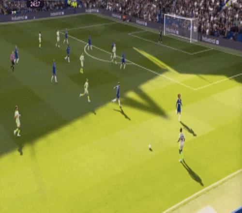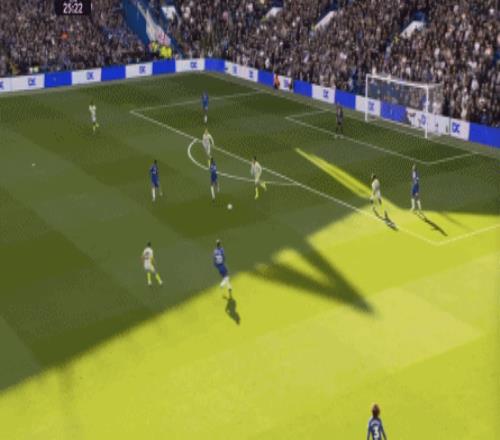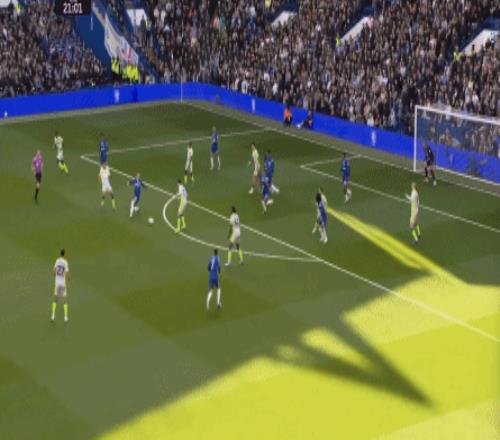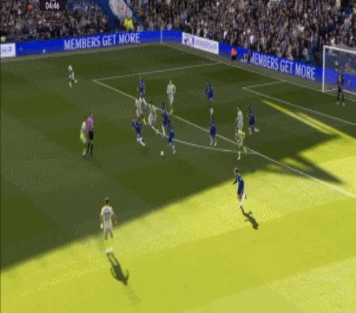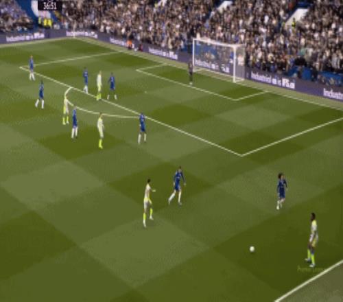 這種情況下,帕爾默和若昂-佩德羅又不能直接從中路打出進攻,也就不能吸引防守重心,從而給邊路制造出更大的空間,所以在上半場后半段,切爾西的威脅進攻就變得很少了,這次帕爾默在中路實際失誤,但錯進錯出形成的傳中,就是為數(shù)不多的機會了: