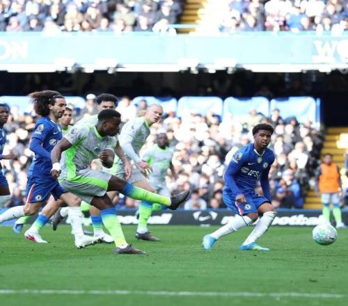 與之前足總杯4-0大勝利物浦的比賽相比,瓜迪奧拉只在門將位置做了調(diào)整,多納魯馬首發(fā)出戰(zhàn),其余10人則原封未動。比賽開始后,曼城也依然跟之前2場比賽一樣在左路展開狂攻,而切爾西顯然也做好了準(zhǔn)備。除了右后衛(wèi)古斯托、后腰桑托斯之外,就連前腰帕爾默也經(jīng)?;爻返竭@個區(qū)域,增加防守人數(shù)。同時(shí),藍(lán)軍也打出了幾次不錯的反擊。庫庫雷利亞還在第16分鐘打進(jìn)1球,可惜因?yàn)樵轿槐慌袩o效。