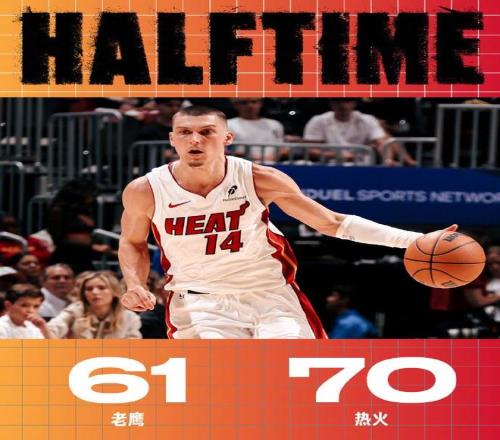次節(jié)比賽,雙方均是單節(jié)得分35+展開對(duì)攻大戰(zhàn),熱火繼續(xù)保持高效進(jìn)攻火力。前兩節(jié)比賽,熱火46中27接近6成準(zhǔn)星,其中三分14中6,阿德巴約17+8引領(lǐng)3人得分上雙。老鷹46中23,其中三分20中8,希爾德16分與基斯珀特12分,雙方單節(jié)維持37-37,上半場(chǎng)結(jié)束熱火70-61領(lǐng)先老鷹。