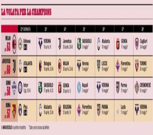 最后6輪比賽,這4支球隊的賽程都不夠樂觀,最終的排名存在很大變數(shù)。米蘭方面,先是客場挑戰(zhàn)降級區(qū)的維羅納,然后與尤文進行直接對話,之后的對手分別是薩索洛、亞特蘭大、熱那亞、卡利亞里。