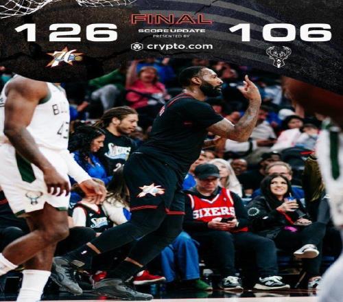 中場休息回來,76人第三節(jié)進攻火力爆發(fā),第三節(jié)狂轟38-16凈勝22分優(yōu)勢,前三節(jié)比賽結(jié)束76人已經(jīng)反超18分優(yōu)勢。76人最多時刻取得28分優(yōu)勢,最終76人126-106大勝雄鹿。