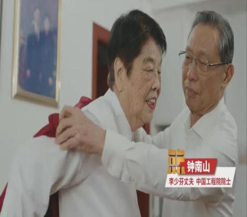 李少芬丈夫鐘南山親手為妻子穿上“名人禮服”,并說(shuō)道“很不容易啊,能夠穿上這個(gè)衣服”“這樣挺好看的”“很少見(jiàn)到你那么興奮,那么高興,也是我們家的一個(gè)光榮?!?/p>