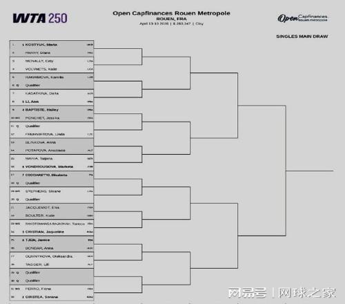 WTA250魯昂站:科斯秋克、科斯蒂亞作為前二種子領(lǐng)銜。萬(wàn)卓索娃、卡薩金娜、斯蒂芬斯等名將出戰(zhàn)。